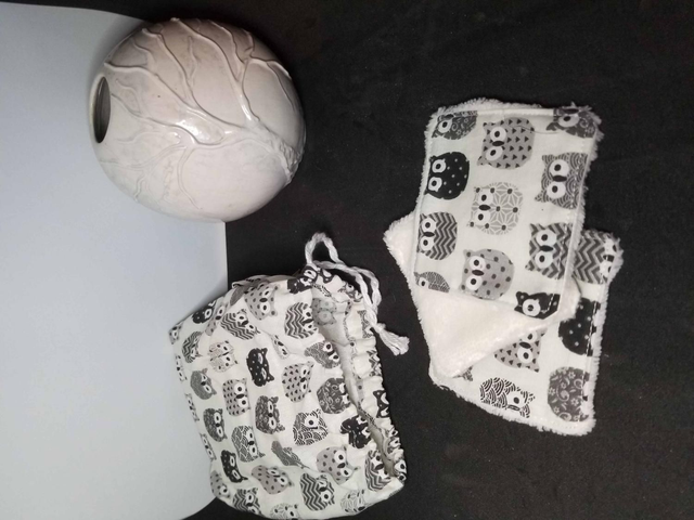 10 lingettes démaquillantes dans son pochon, face coton imprimé et face bambou