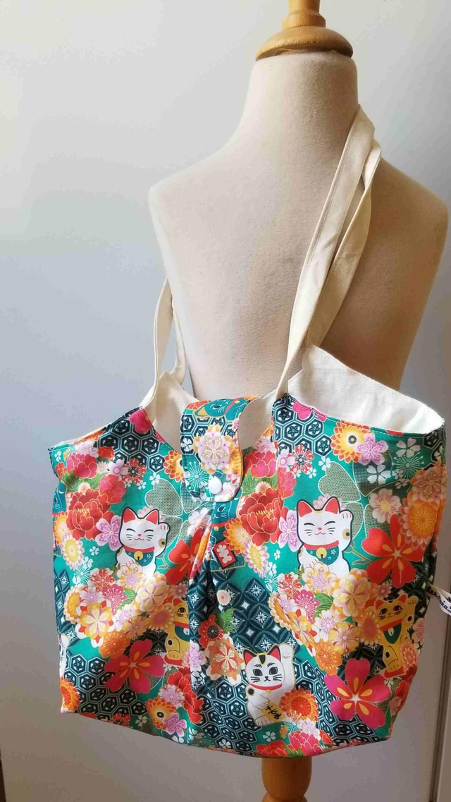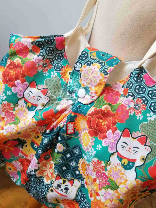 sac panière en coton fantaisie et doublé coton uni d environ 30x23 cm. il permettra le rangement de divers accessoires.