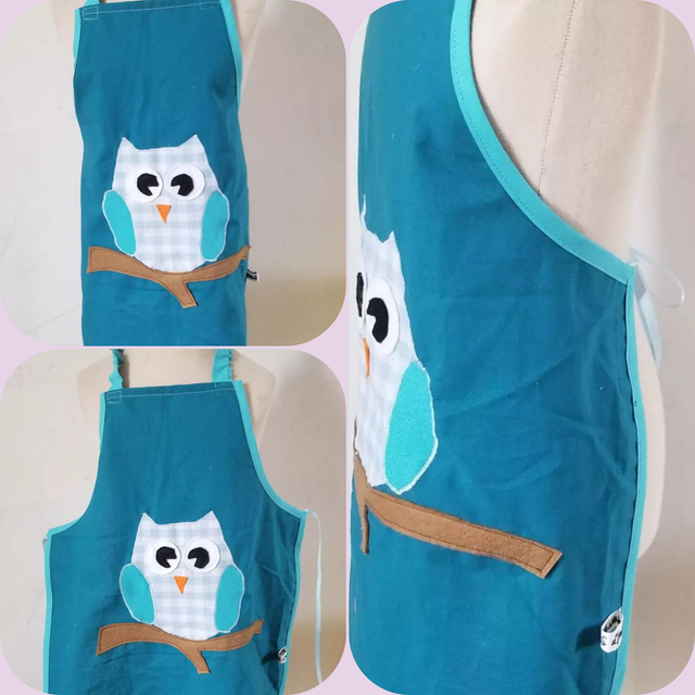 tablier pour enfant de 3 à 6 ans, en coton, s'enfile par la tête gràce à son élastique et s'attache dans le dos avec un ruban